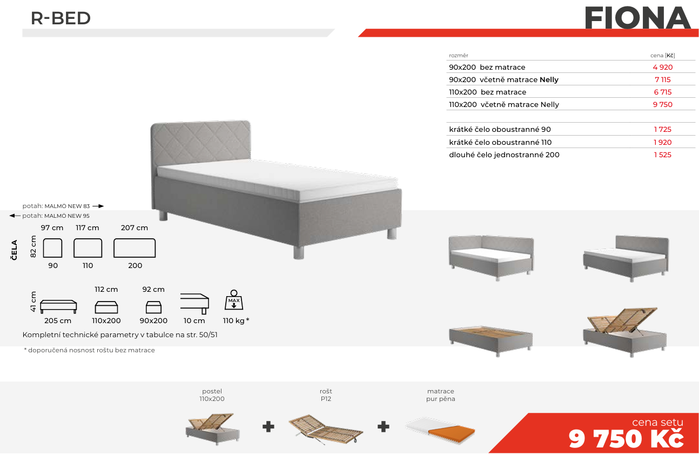 Úvod > Sortiment > Ložnice > Postele > Čalouněné postele > FIONA 90x200