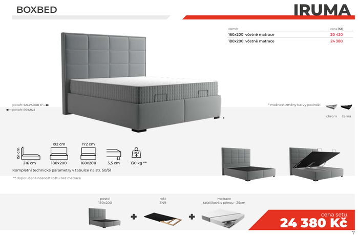 Možnost volby roštů P11 s elektrickým polohováním hlavy pomocí ovladače za příplatek 4.699,- Kč