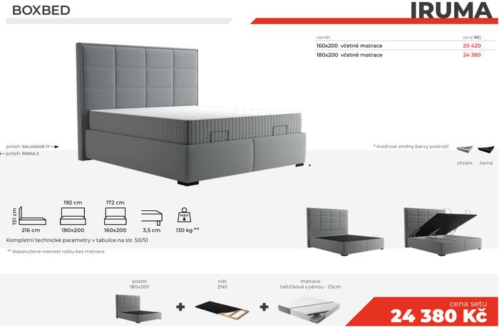 Možnost volby roštů P11 s elektrickým polohováním hlavy pomocí ovladače za příplatek 4.699,- Kč