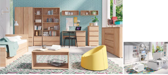 KOSMOS je moderní sektorový nábytek, který se hodí do každého dětského pokoje, díky svému bezúchytkového systému dodá pokoji moderní vzhled. Design je dělaný bez ABS hran.