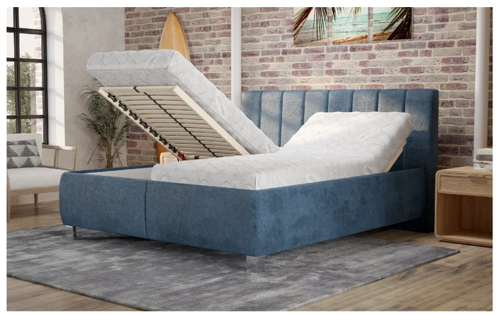 Luxusní, manželská postel Vario MAUI s pečlivě čalouněným čelem od českého výrobce MAWS. Pečlivě čalouněnými pásy tvořené čelo bude krásným a elegantním kusem ve vaší ložnici. Součástí postele je již v ceně kvalitní 28 lamelový polohovací rošt s možností nastavení tuhosti ložné plochy a úložný prostor.