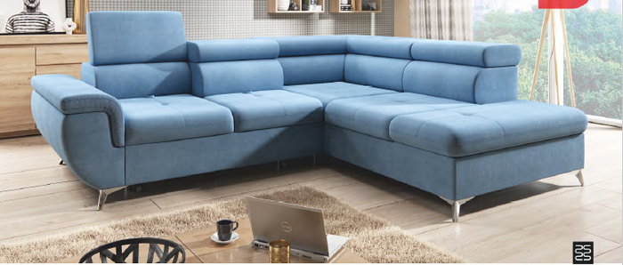Moderní sedací souprava, rozkládací s úložným prostorem, očalouněná záda, pohodlné sezení zabezpečují kvalitní PUR pěny a vlnité pružiny v sedáku. Regulovatelné opěrky hlavy. Výsuv zádových opěrek dopředu, vhodné pro menší postavy.