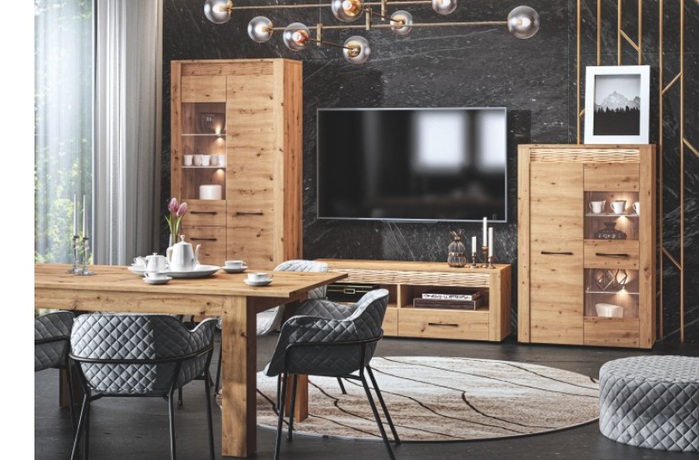 Systém, který je inspirován přírodním vzorem s výraznými suky dřeva, zvýrazňující charakter nábytku. V Kombinaci s vyváženým a jednoduchým designem tvoří originální duo, které změní každý interiér. Černá kovová rukojeť je skvělým kontrastem s teplým dubovým dekorem a osvětlením. Ozdobná drážka dodá vašemu interiéru záři a jedinečné klima.