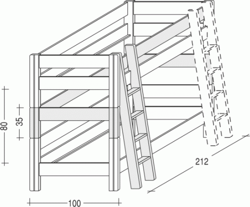 Skládá se ze dvou samostatně využitelných postelí a spojovacího dílu se schůdky.