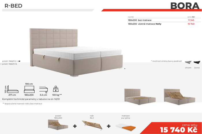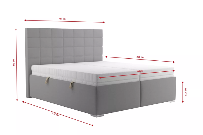 Moderní dvoulůžko Bora je vyráběno v rozměru 180x200 cm.