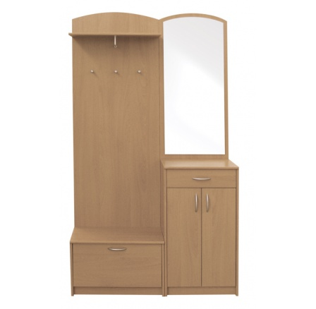 Na poměrně úsporném prostoru vám poskytne vše, co potřebujete, když přijdete domů. Háček na kabát, možnost pověsit si sako na ramínko, zavřít boty do botníku a rukavice schovat do šuplíku. A pak už jen prohrábnout vlasy před zrcadlem.