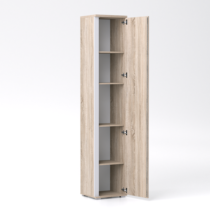 Vysoká, ale užší skříň s univerzálním osazením dveří. Vhodná na místa, kde nemůžete umístit širší skříň. Police si můžete dokoupit a umístit dle vlastní potřeby.