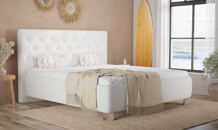 Čelo prošité látkovými knoflíky s vysokou ložnou plochou vytvoří ve vaší ložnici nadčasový a elegantní kus nábytku.